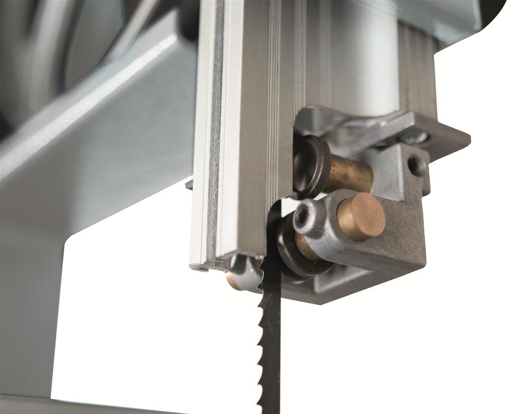 • Das obere Sägeblatt wird über eine Zahnstange und ein Ritzel geführt und ist höhenverstellbar.